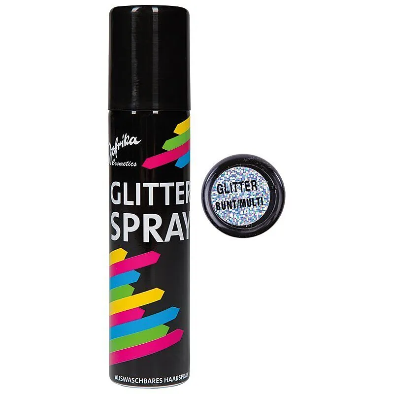 Bunter Glitter-Haarspray mit Glanzeffekt. Kann mit Shampoo und Wasser wieder ausgewaschen werden.Inhalt: 100ml