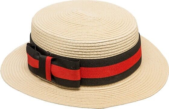 Strohhut mit schwarz-rotem Band