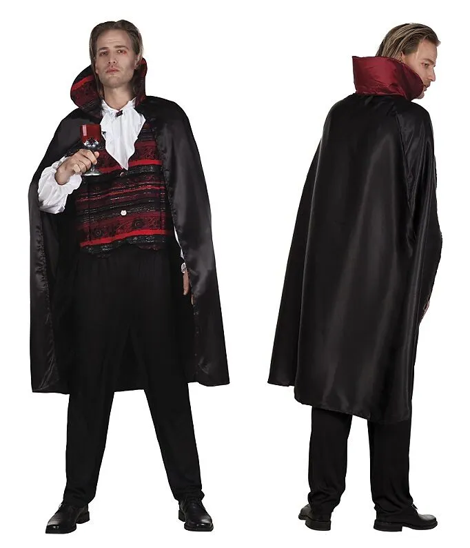Grösse: 54-56Lieferumfang: Cape mit Halsband, Oberteil mit Rüschen, HoseSchönes Vampirkostüm in klassischem rot/schwarz