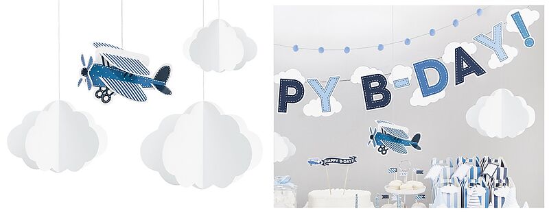 Grösse: Wolken: 28x19x28cm, 23x15x23cm, 17x11x17cm / Flugzeug: 22x12x20cm