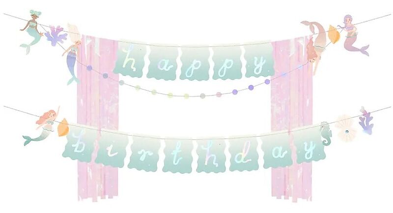 Banner Happy Birthday Meerjungfrau, aus Papier, Farbenmix, Maße ca. 130 x 100 cm, Schnurlänge ca. 4,3 m. Produkt zur Selbstmontage.