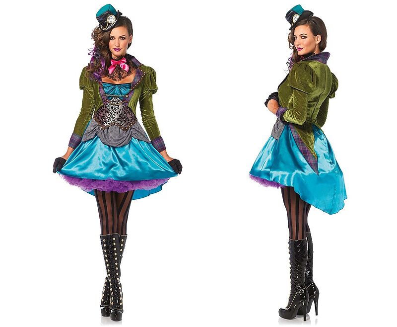 Lieferumfang: Kleid mit Reissverschluss, Mini-Zylinder, Halsband Material: 100%Polyester Wunderschönes aufwendig gestaltetes Hutmacher Kostüm mit vielen Details.