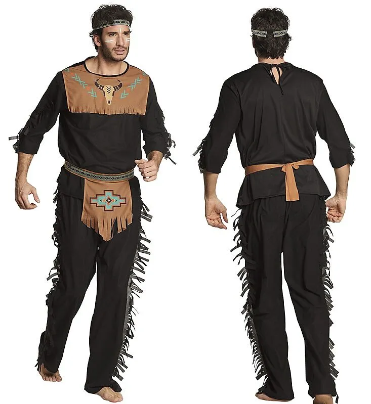 Grösse: 54-56Lieferumgfang: Kopfband, Oberteil, Gürtel, HoseSchönes Indianer Kostüm in schwarz/braun mit farbigen Details.