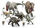 Kleine Tischaufsteller, Partydeko - T.Rex: 25cm, Indominus Rex: 20cm, Raptor: 15cm, Ankylosaurus: 19cm, Gallimimus: 20cm, Triceratops: 18cm, 2x Mini T.Rex: 7cm.The product is officially licensed.