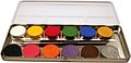 Solider Metallkasten, 2 Pinsel dabei. Wasserl. Schminkfarben ohne Parfümstoffe. Getestet, aber NICHT an Tieren. Mit Wasser und Seife entfernbar.