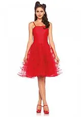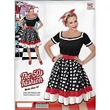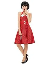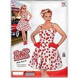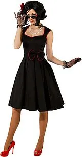 Mit diesen 50er Jahre-Kostümen für Damen rocken Sie die Party. Bei uns finden Sie weit schwingende Rockabilly-Petticoats, die Sie am besten mit Unterrock tragen. Typisch sind Punkte, eine Schleife im Haar, roter Lippenstift natürlich und eine schicke Brille. So wird Ihr 50ies Look perfekt!
