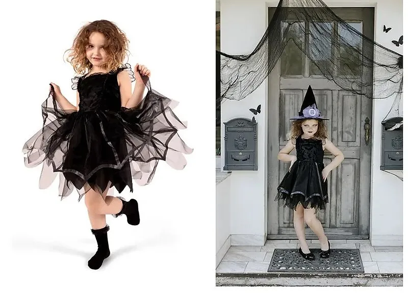 Kinderkostüm Hexe in Schwarz, Größe 116-128. Zusammensetzung: Polyester - 100%. Pflegehinweise: Handwäsche.Lieferumfang: Kleid
