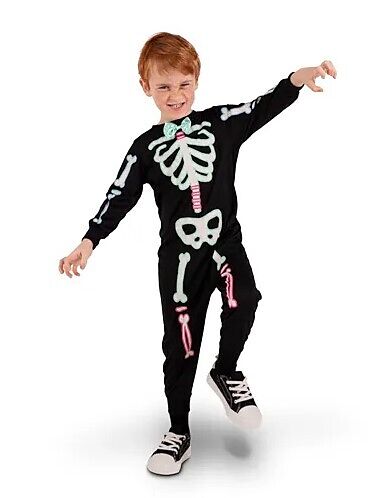Kinderkostüm Skelett schwarz/weiss/farbig