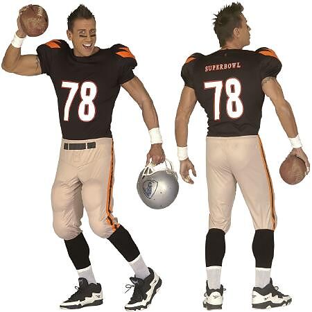 Machen Sie den Quaterback! Lieferumfang: gepolstertes T-Shirt und gepolsterte Hose Farbe: schwarzes Oberteil und beige Hosen Grösse: M