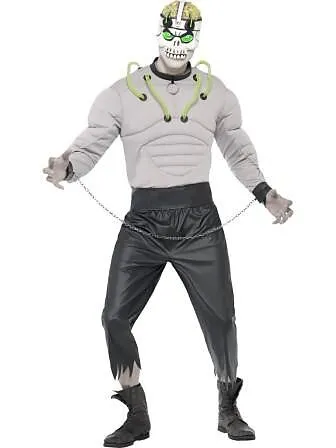 Oberteil, Hose, Gürtel, Armbänder, Kette und Maske