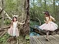 Das Kleid hat einen vollen Rock mit goldenen Glitzerdetails, einem Ombré-Effekt auf den Tüllschichten, ® langen Ärmeln und einem V- Ausschnitt. Der Rock ist gefüttert, damit er nicht kratzt oder juckt. Der weisse Tüllrüsche um den Ausschnitt und der Schwanz am...
