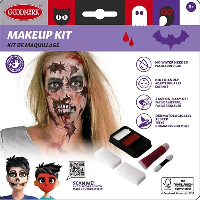 Erschrecken Sie Ihre Freunde dieses Halloween mit diesem ZOMBIE-Make-up-Set, komplett mit allem, was Sie brauchen, um wie die lebenden Toten auszusehen! Das Set enthält 1 Schale mit weissem, rotem und schwarzem Fett-Make-up (je 1 g), 1 Tube Kunstblut (3,5 ml),...