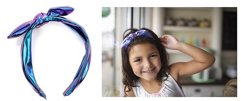 Dieser atemberaubende Haarreif ist aus foliertem Metallic-Spandex gefertigt. Er ist mit einer schönen Schleife versehen und eignet sich perfekt, um dem Outfit etwas Flair zu verleihen! empfohlenes Alter: ab 3 Jahren