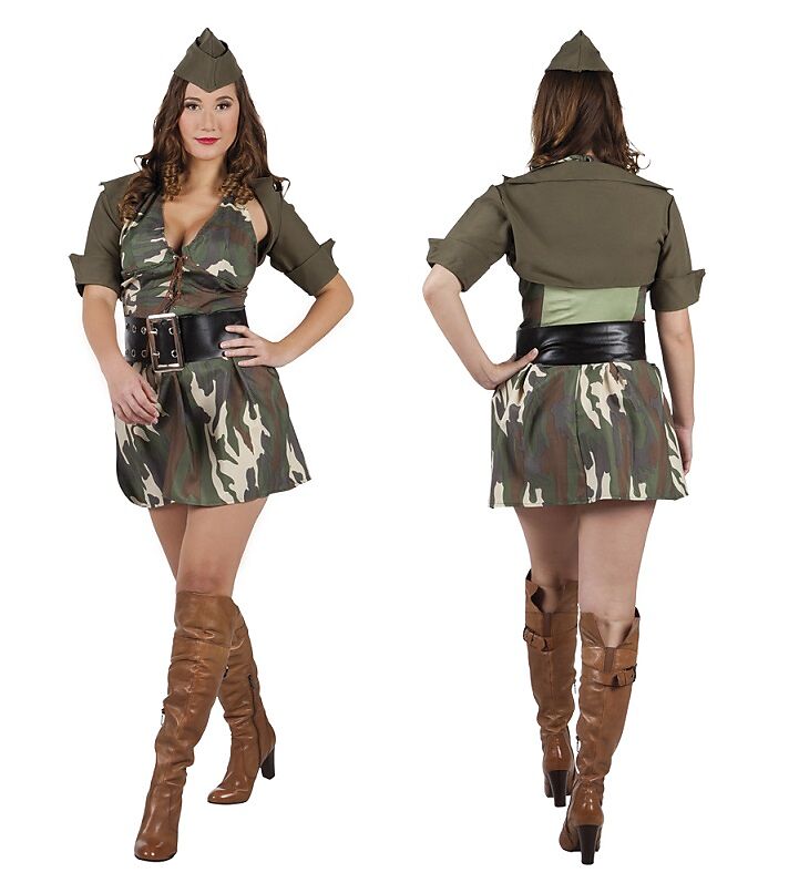 Grösse: 36-38 Lieferumfang: Hut, Kleid, Bolero, Gurt Sexy Militärkleidchen welches mit oder ohne Bolero getragen werden kann und sich somit ideal für Party's drinnen und draussen eigent.