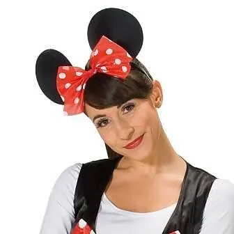 Schwarzer Haarreif mit großen runden Mäuseohren und einer rot-weiß gepunkteten Haarschleife.Einheitsgrösse