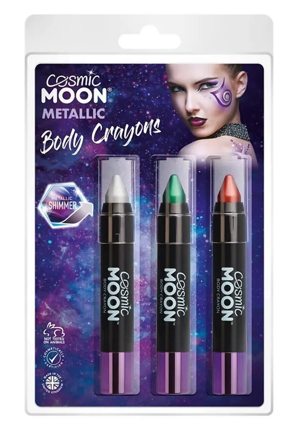 Farbe: silber, grün, rot Inhalt: 3 x 3.2 g Der Moon Cosmic Body Crayon ist zum schminken des gesammten Körpers geeignet. Durch seine Stifartige Form super in der Handhabung und es können gut, auch Motive gemalt werden. Der Stift hinterlässt ein beeindruckender...