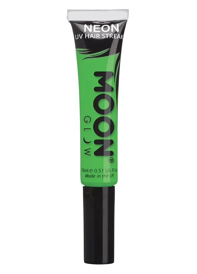 Farbe: grün Inhalt: 15 ml Die Moon Glow Intense Neon UV Hair Streaks sind für alle Haartypen geeignet und verleihen auffällige, neonfarbene Strähnchen. Tagsüber scheinen sie in auffälligen Neonfarben und nachts werden sie unter dem UV-Licht zum Leuchten gebrac...