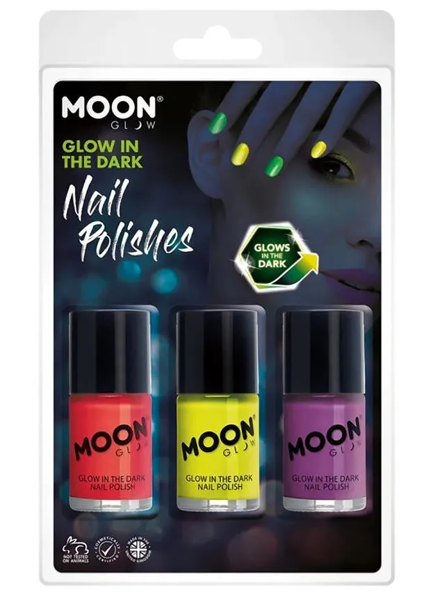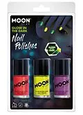 Inhalt: 3 x 14 ml Farbe: rot, gelb, violett Die Moon Glow in the Dark Nail Polish leuchten am Tag und strahlen in der Nacht. Nach dem Auftragen muss die Farbe an einer beliebigen Lichtquelle (UV-Lampe/Schwarzlicht erzielt sofortigen Effekt) aufgeladen werden, ...