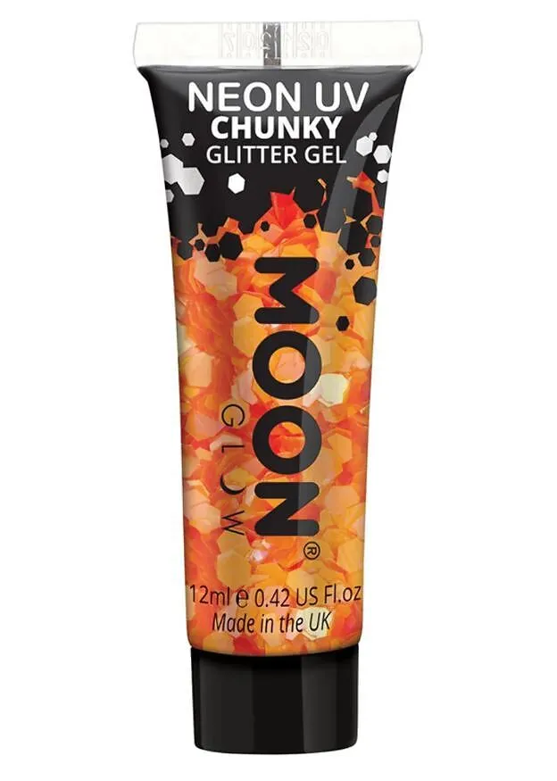 Inhalt: 12 ml Farbe: orange Die Moon Glow Intense Neon UV Chunky Glitter Gels lassen deine Kreationen tagsüber in auffälligen Neonfarben scheinen und nachts werden sie unter dem UV-Licht zum Leuchten gebracht. Made in the UK, 100% Vegan, ohne Tierversuche, fre...