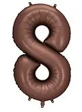 Satin-Folienballon Ziffer 8 in mocha, Größe vor dem Aufblasen ca. 100 cm (39''), Größe nach dem Aufblasen ca. 86 cm (34''). Kann mit Luft und Helium aufgeblasen werden. Das Set enthält einen Strohhalm. Der Ballon ist selbstversiegelnd. Mit Haken für einfache D...