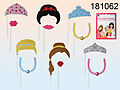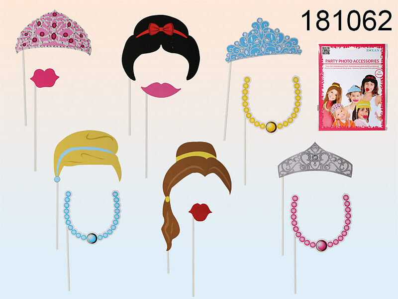 3 x Perücken, 3 x Kussmund, 3 x Halskette, 3 x Krone etc.