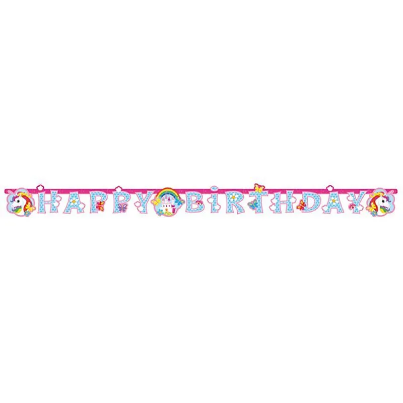 Girlande 180x15cm mit Motiv Einhorn. Mit dieser 1.80 Meter langen Girlande ist die Dekoration zum Fest perfekt.