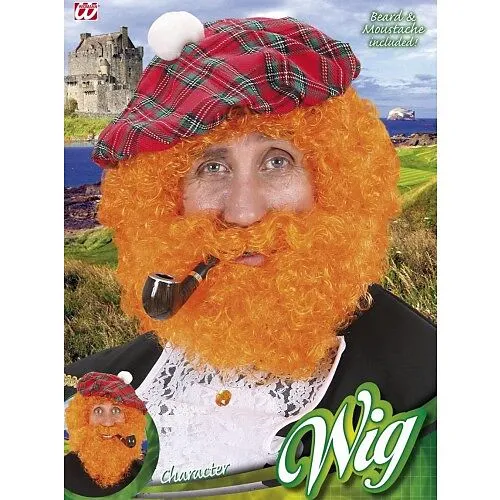 Perücke mit Bart und Schnauz orange