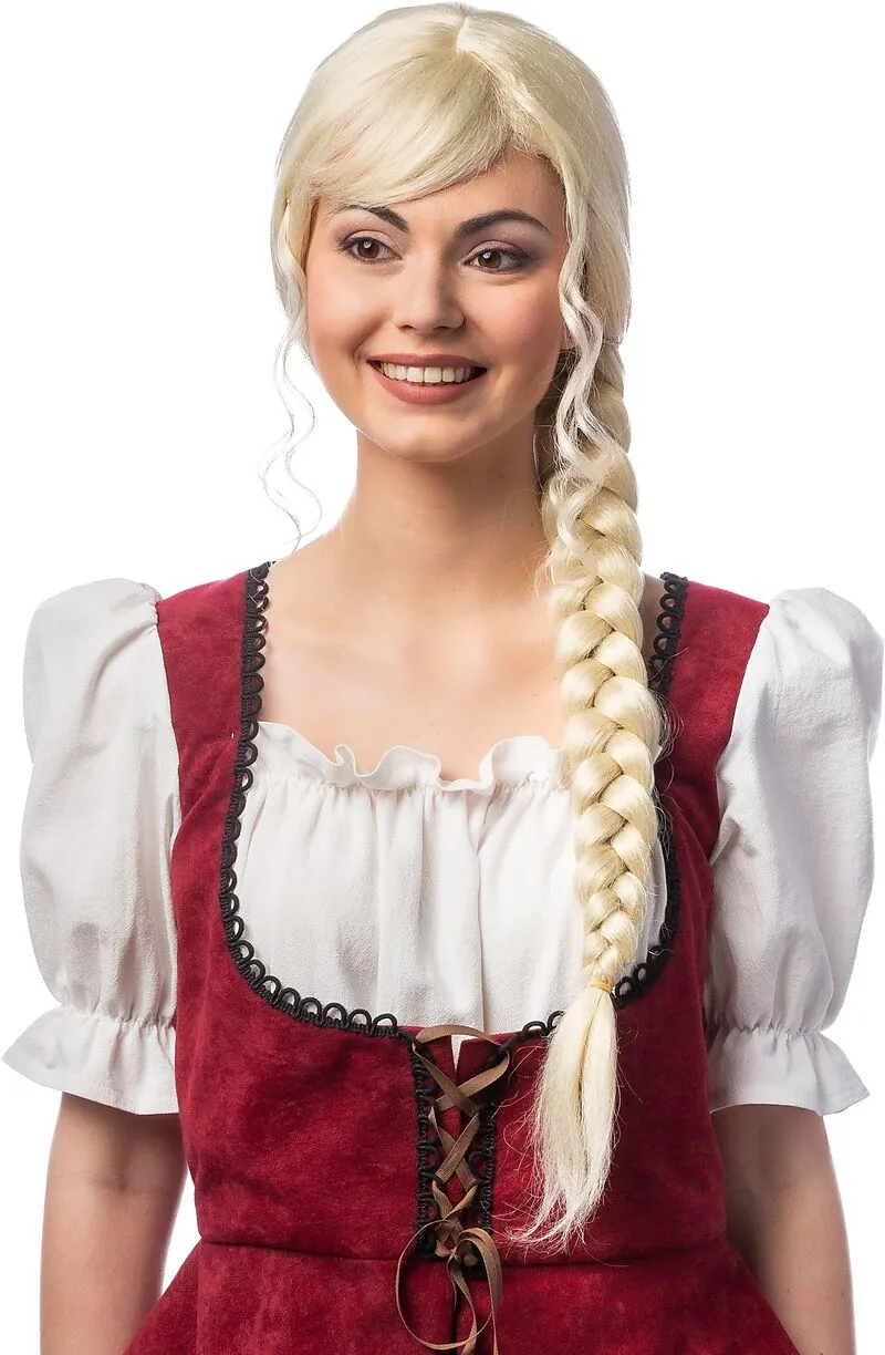Perücke mit langem seitlichem Zopf, blond