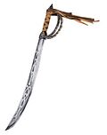Piratenschwert mit einer silbernen, mit Gravuren verzierten Klinge, einem zweigeteilten Heft und einem mit braunen Stoffstreifen umwickelten Griff. Länge: ca. 70 cm. 100% Polypropylen