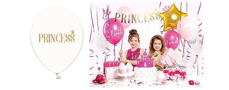 Grösse: ca. 30cm Info: zum befüllen mit Luft Lieferumfang: 6 Stück Cooler Latexballon mit goldfarbiger Aufschrift "Princess". Diese Ballons musst du haben!