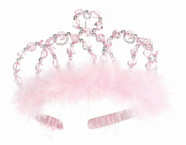 Transparente rosa Perlen mit silbernen Akzenten sind kunstvoll verwoben und bilden diese Prinzessinnen-Tiara. Eine mit rosa Bändern umwickelte Basis ist zusätzlich mit rosa Marabou und klaren Kämmen verziert. Diese Prinzessinnen-Tiara passt zu allem. empfohlen...