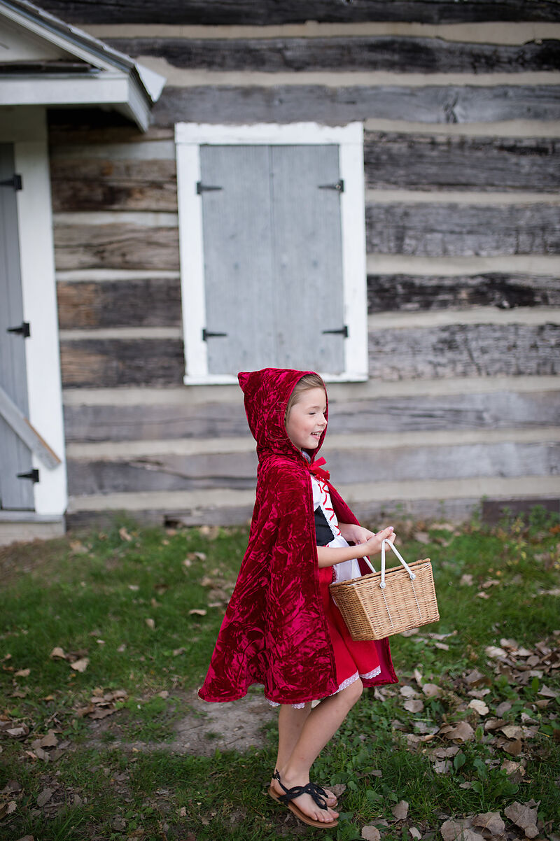 Dieser Umhang verfügt über eine grosse Kapuze mit Klettverschluss und einem roten Satinband-Detail. Dieser perfekte Rotkäppchen-Umhang ist natürlich maschinenwaschbar und bereit für viele Abenteuer. Empfohlenes Alter: 3 - 4 Jahre