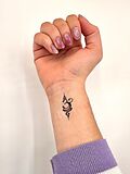 ca. 4cm Hält ca. 2-7 Tage, hängt davon ab, wo das Tattoo aufgesetzt wird und wie nass es wird. Eine Gebrauchsanleitung liegt bei. Das Tattoo kann mit Öl entfernt werden.