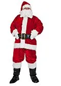 Lieferumfang: Jacke,Hose,Weihnachtsmütze,Gürtel,Brille,Bart Handschuhe & Stiefelüberzieher Grösse: M/L, 100% Polyester