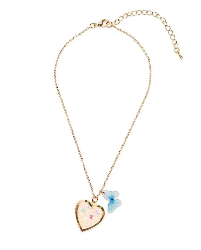 Das herzförmige Medaillon ist ein liebevoller Aufbewahrungsort für wertvolle Erinnerungen und kleine Andenken, immer ganz nah am Herzen getragen. Die glatte Oberfläche zeigt ein wunderschönes Muster aus tanzenden Schmetterlingen im Wind. Abgerundet wird das De...