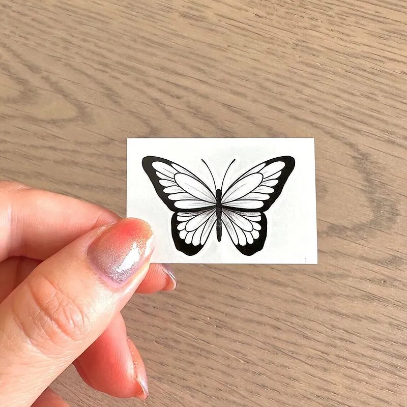 ca. 5cm Hält ca. 2-7 Tage, hängt davon ab, wo das Tattoo aufgesetzt wird und wie nass es wird. Eine Gebrauchsanleitung liegt bei. Das Tattoo kann mit Öl entfernt werden.