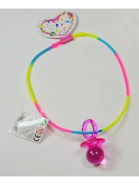 Ein Schnuller zum Umhängen an einem Rainbow-Optik Silikonhalsband.