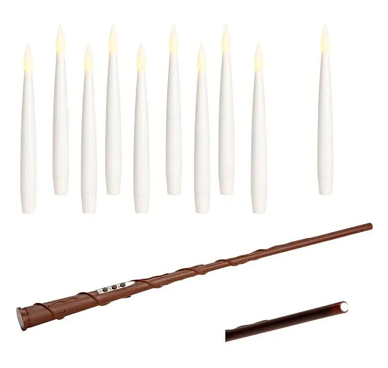 10er Set mit Zauberstab Fernbedienung, Draht und Haken, aus Wachs weiß Höhe: 15cm Batteriebetrieb 11 x AAA nicht enthalten wer kennt die schwebenden Kerzen nicht? Perfekt für Halloween, Weihnachten oder magische Anlässe.