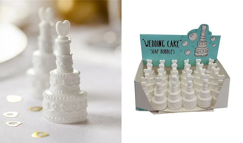 Schöne, weisse 3-lagige Hochzeitstorten als Seifenblasen-Spender! Grösse: je 70 x 30 mm. Die perfekte Überraschung an jedem Hochzeitsfest. Behält man nach Gebrauch gerne als schöne Erinnerung auf und die kleinen Torten sind bei den Kindern sehr beliebt für den...