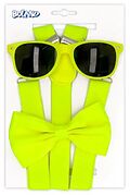 Set Hosenträger, Fliege, Partybrille gelb