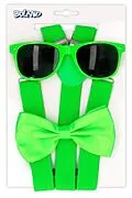 Dieses stilvolle Accessoire-Set besteht aus einer schwarzen Partybrille, einer Fliege und Hosenträgern. Die perfekte Kombination, um einen festlichen Look zu kreieren und passt zu verschiedenen Anlässen. Einheitsgrösse