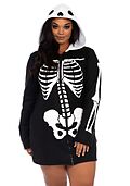 Lieferumfang: Kleid, Hut Material: 100% Polyester Warmes Fleece-Kleid mit Skelettdruck und Frontreissverschluss. Das perfekte Kostüm für eine kalte Halloweennacht.
