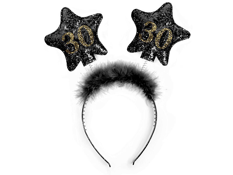 Stirnband mit Sternen 30 in Schwarz, mit Federn, Sterngröße ca. 13 Zentimeter.