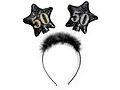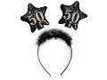 Stirnband mit Sternen 50 in Schwarz, mit Federn, Sterngröße ca. 13 Zentimeter.