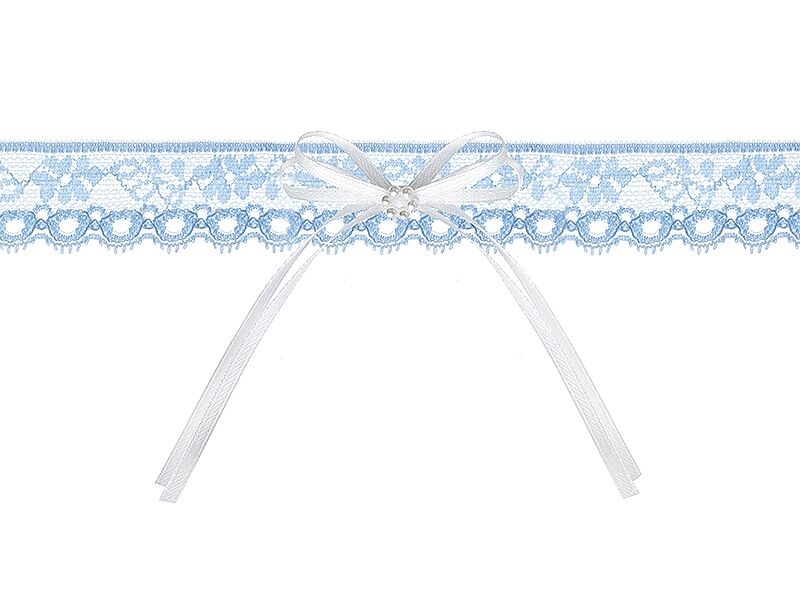 himmelblaue Spitze mit Satinschleife und Perlenblume
