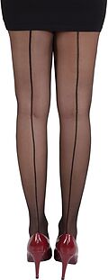 Lieferumfang: Strumpfhose mit Naht in der Farbe schwarz Details: Gr. 42-48 Materialzusammensetzung: 90% Polyamid, 10% Elasthan