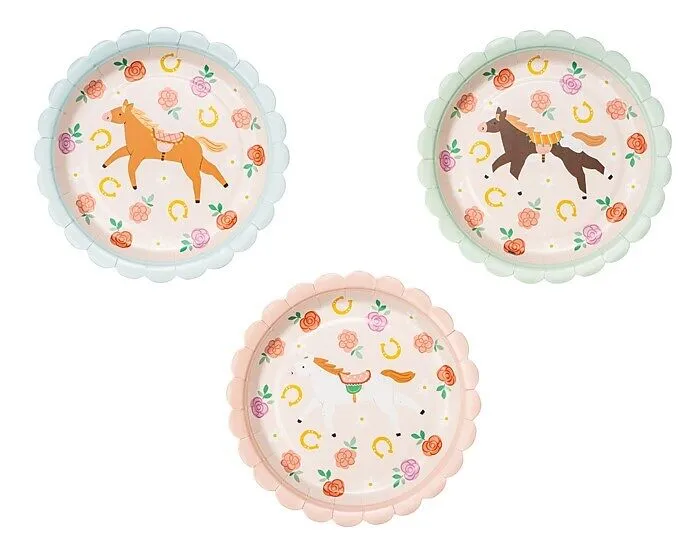 Pappteller Pferde, gemischte Farben mit buntem Druck, Durchmesser ca. 18 cm.Die Verpackung enthält 6 Stück.