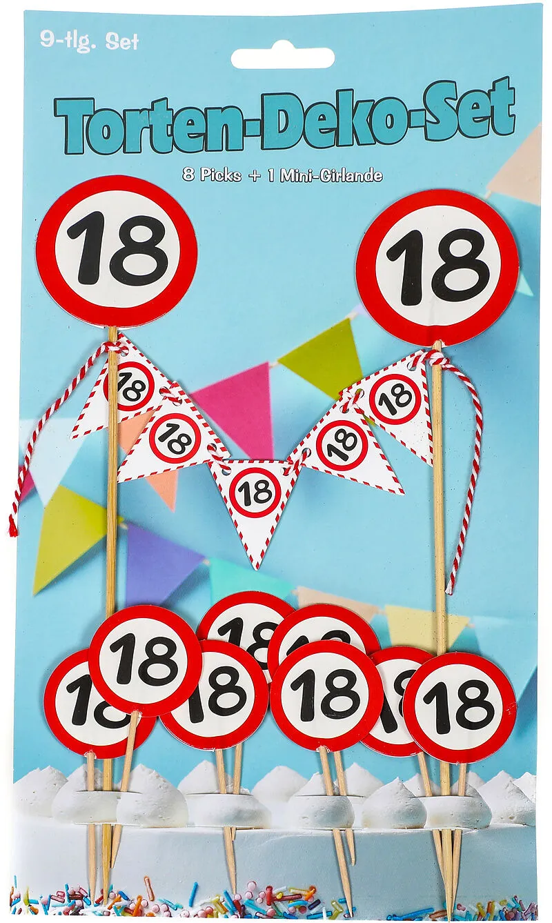 Lieferugfang:8 kleine Zahnstocher-Fähnchen1 Mini-Girlande an StäbenGrösse:Stäbe lang: 23.5cm / Stäbe kurz: 8.5cm / Länge Girlande ca. 15cm