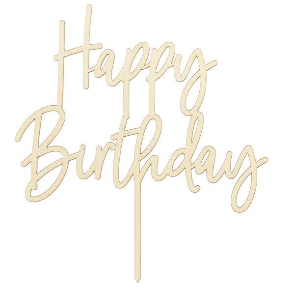 Happy Birthday Caketopper aus Holz, Maße ca. 15 x 16,5 cm.
