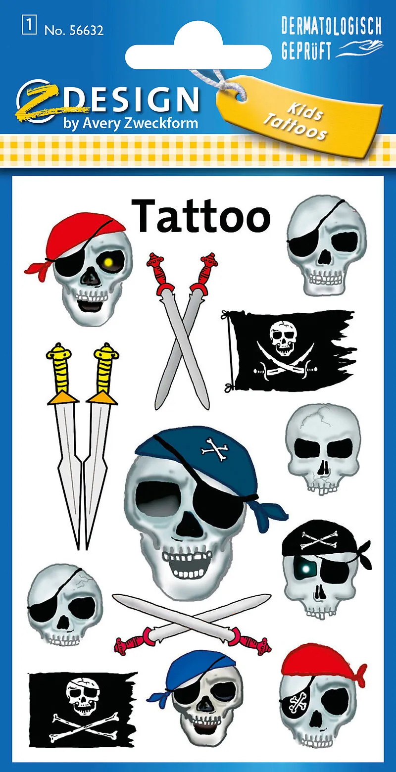 Wasserfeste TattoosEinfache Anbringung mit Wasser, leicht zu entfernen mit ÖlInhalt: 13 TattoosSticker-Verpackungsgrösse: 16 x 8 cm